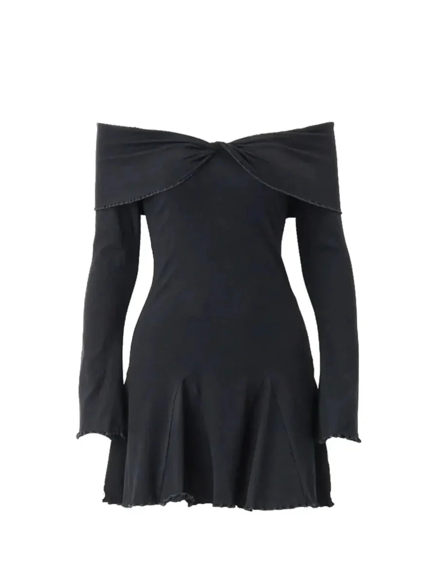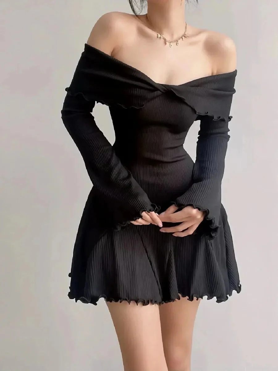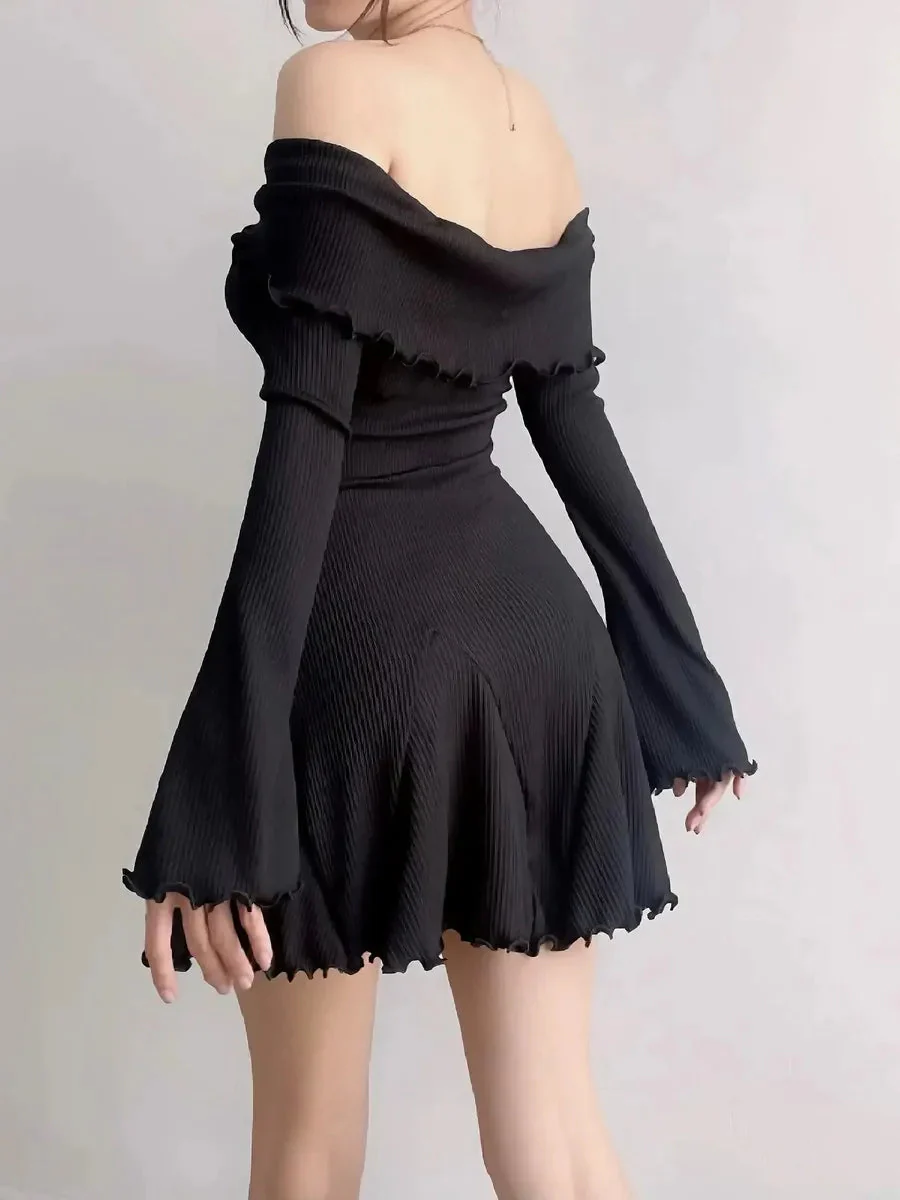 'Maple' Casual Off Shoulder Knitted A-Line Ruffle Dress