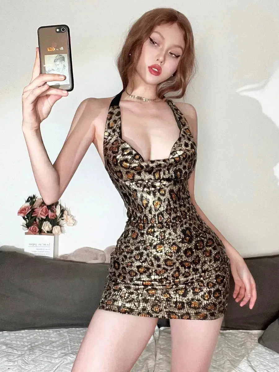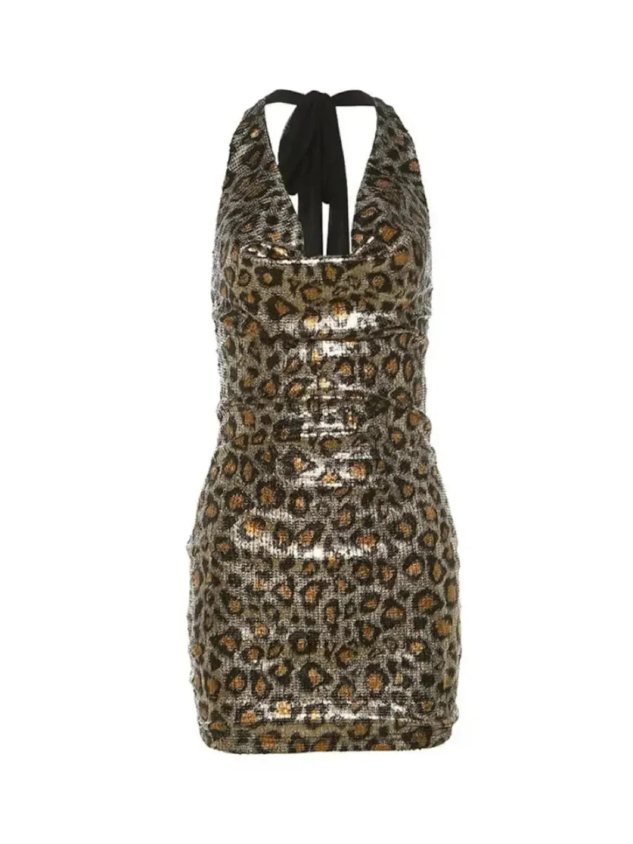 'Lil Leopard' Y2k Shibuya Girls Cheetah Print Glitter Dress