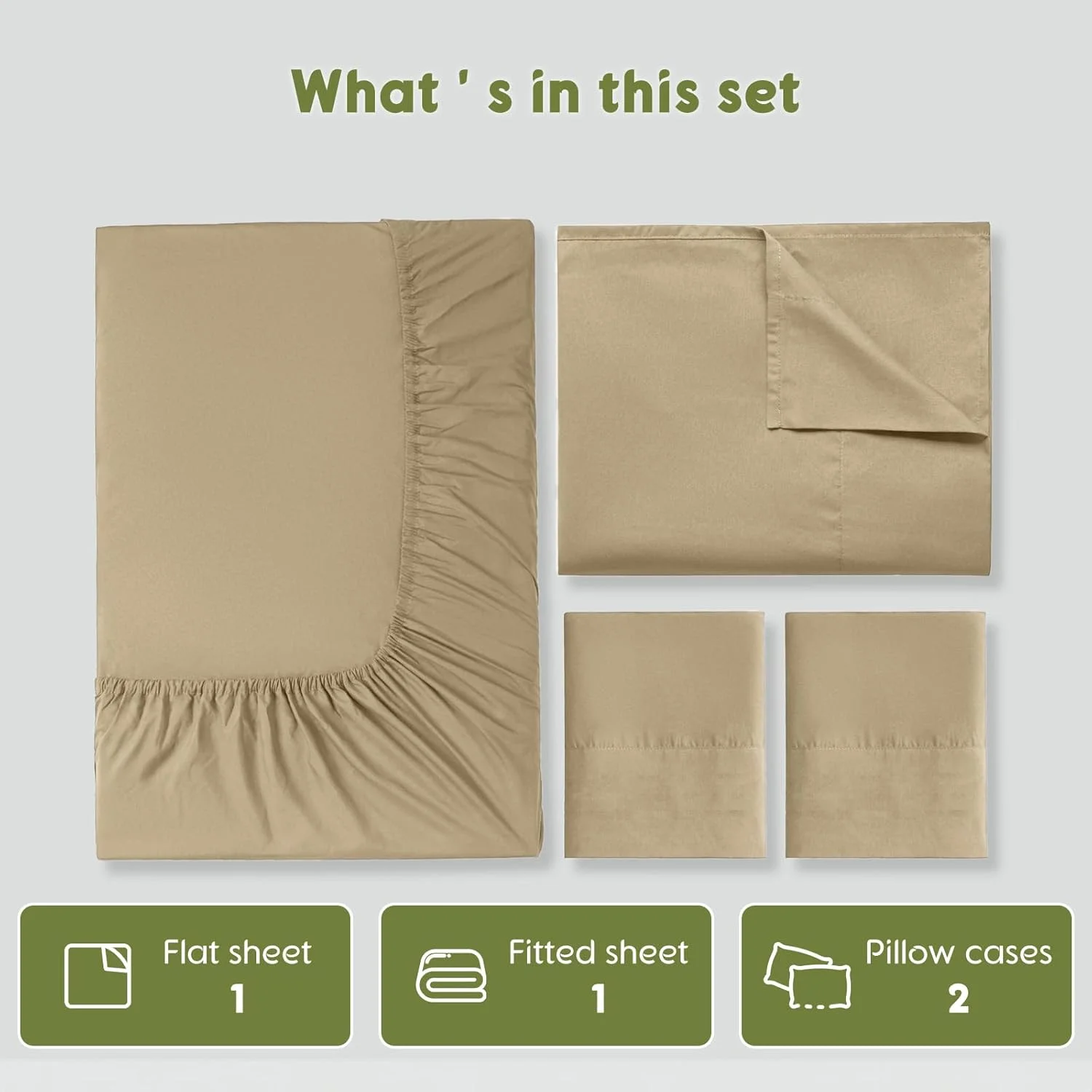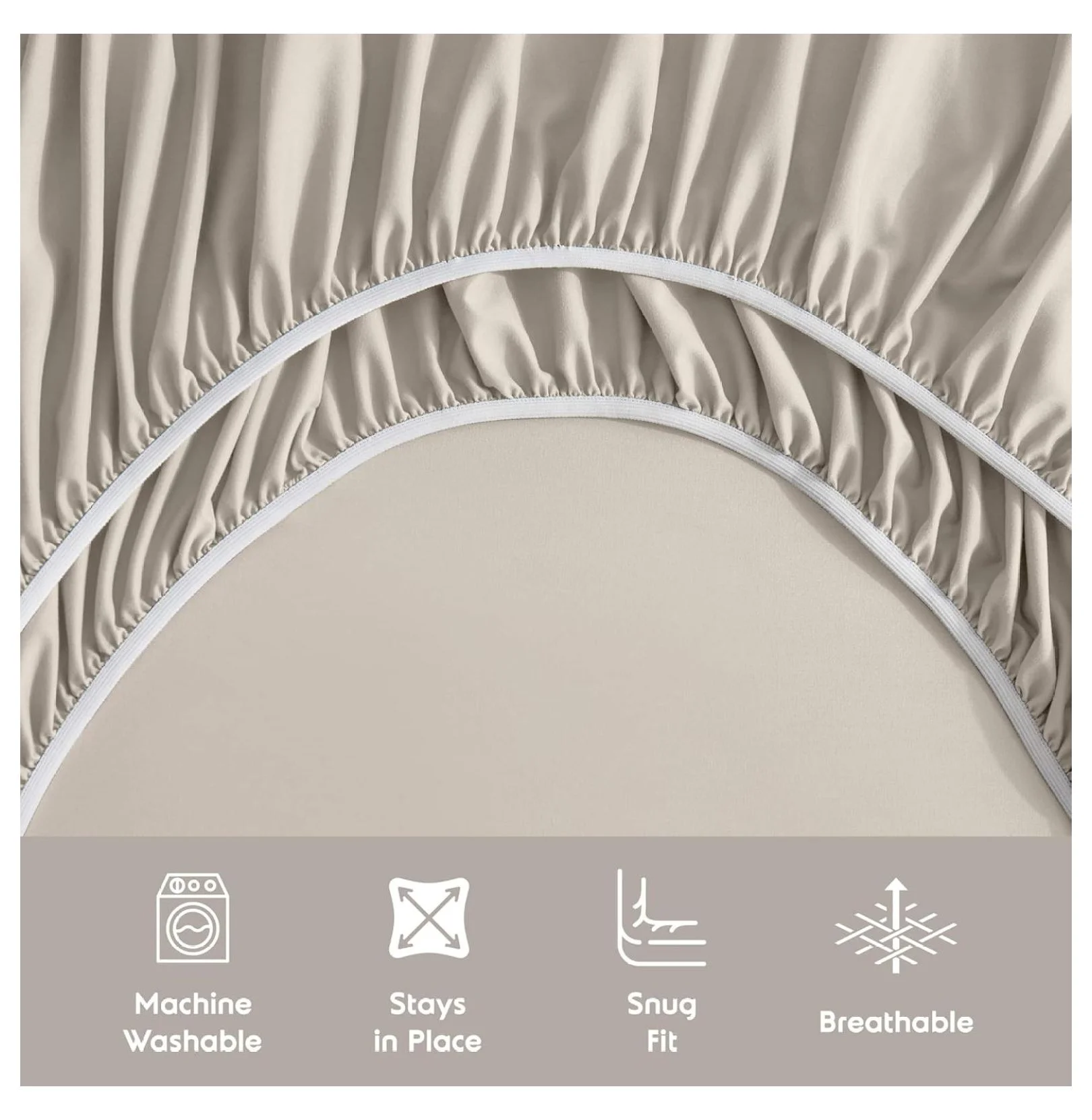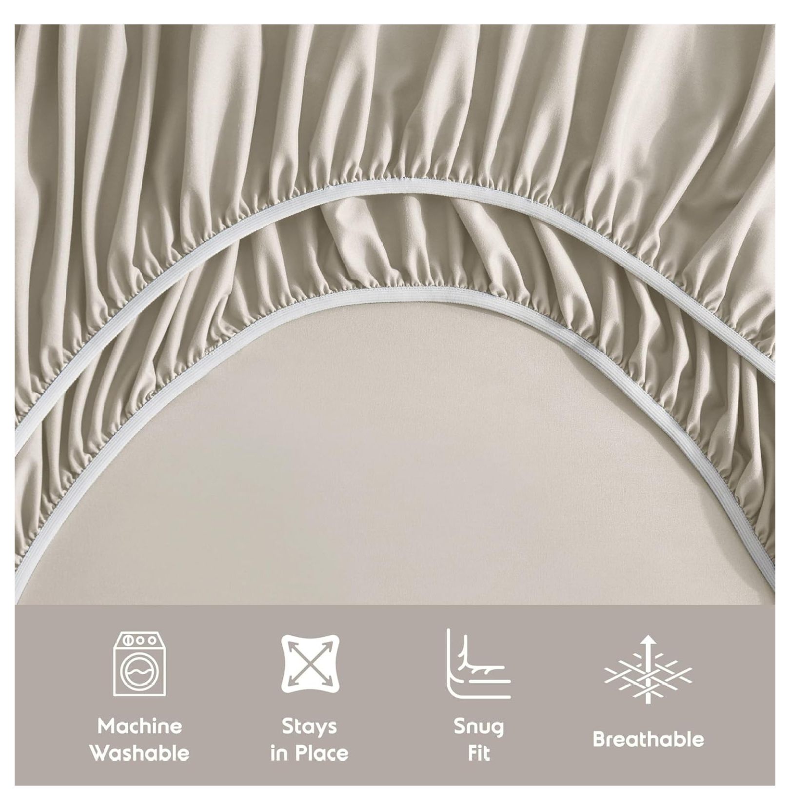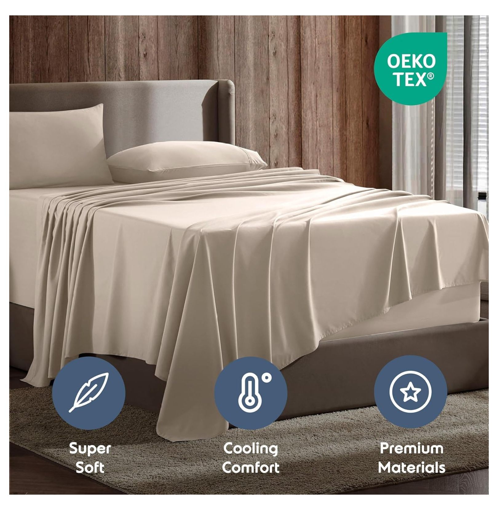 Queen Sheet Set - 4 Piece Bed Sheets for Queen Size Bed, Deep Pocket, Hotel Luxury, Extra Soft, Breathable and Cooling, Beige Cream Queen Size Sheets