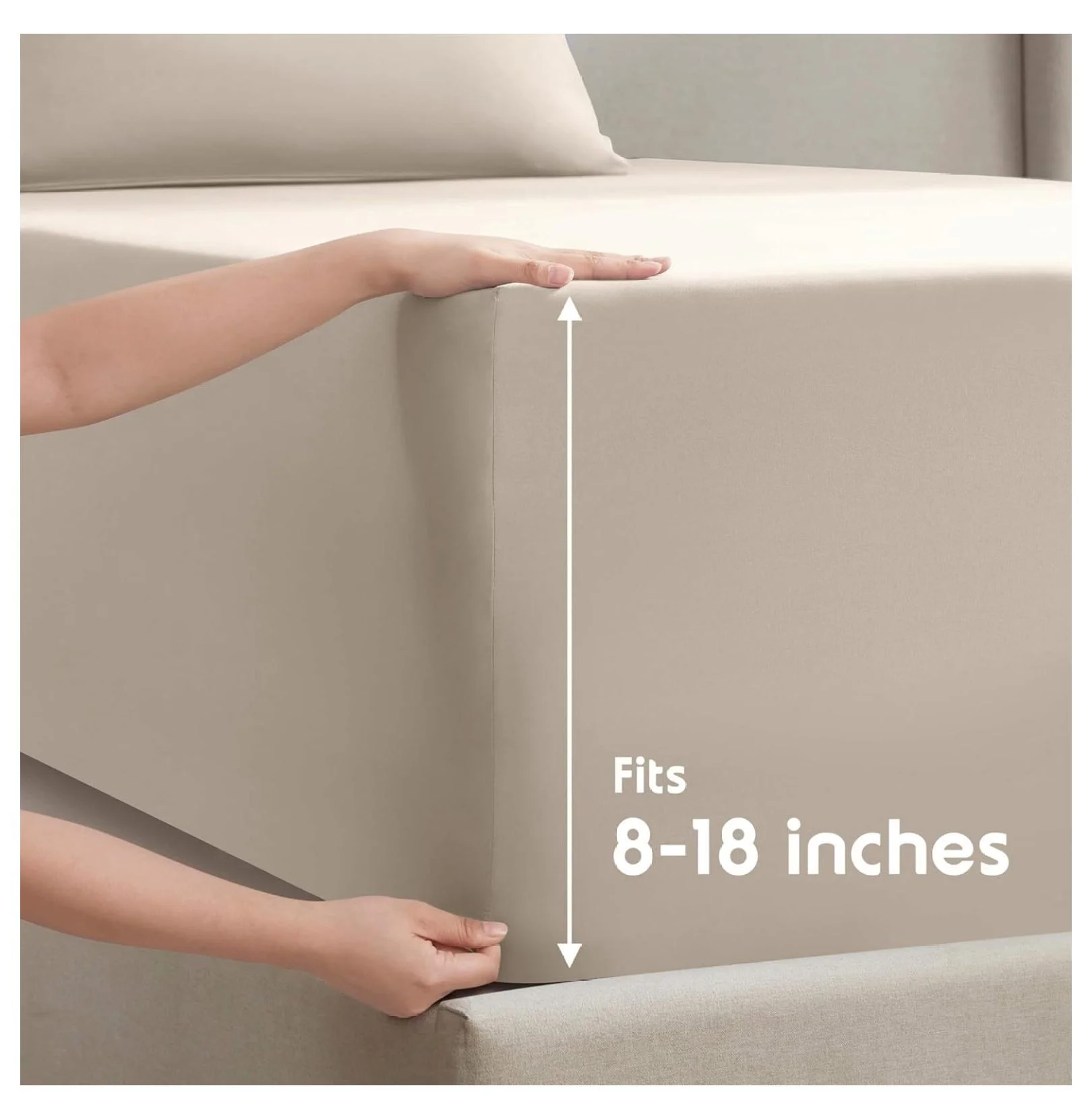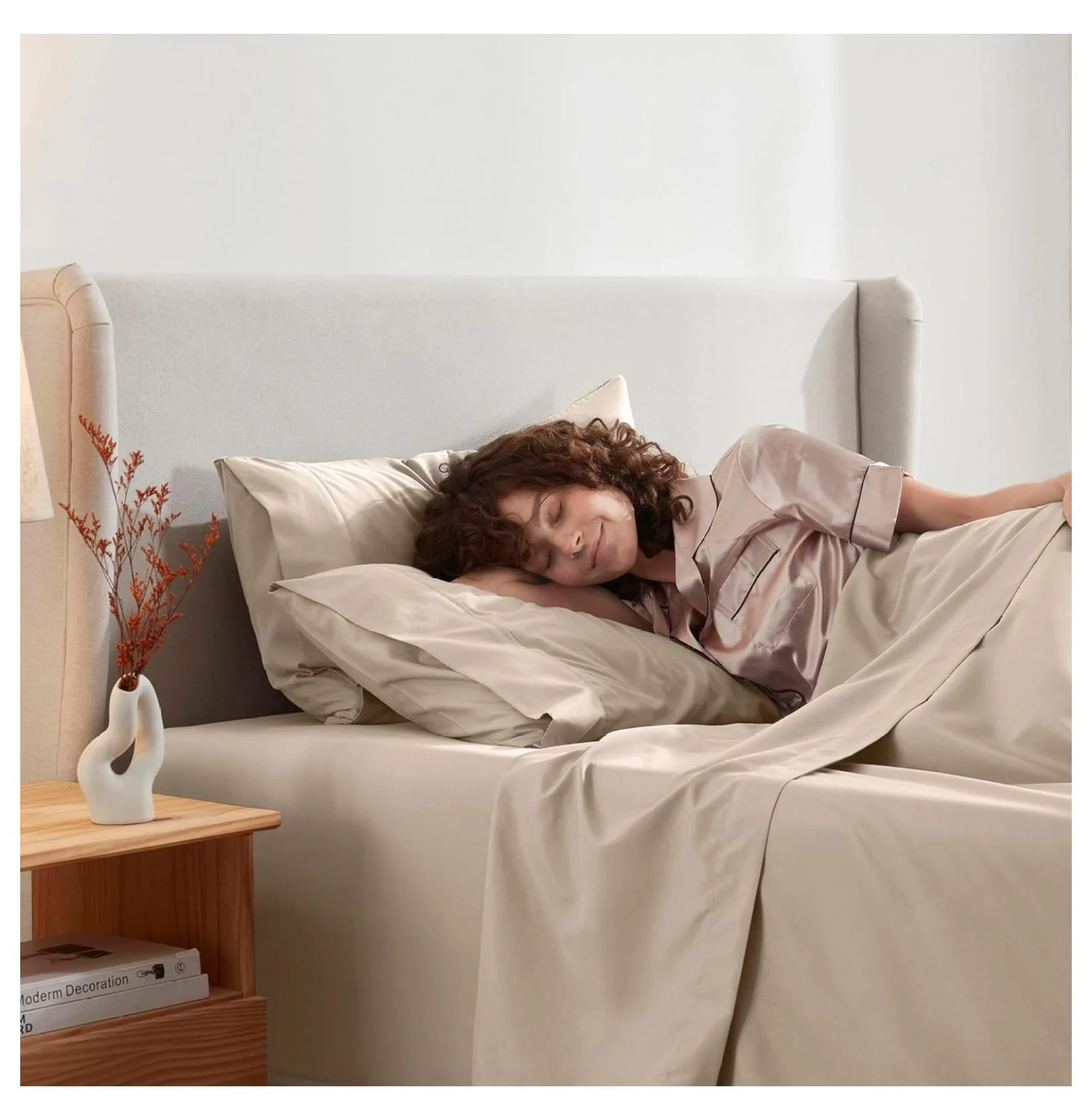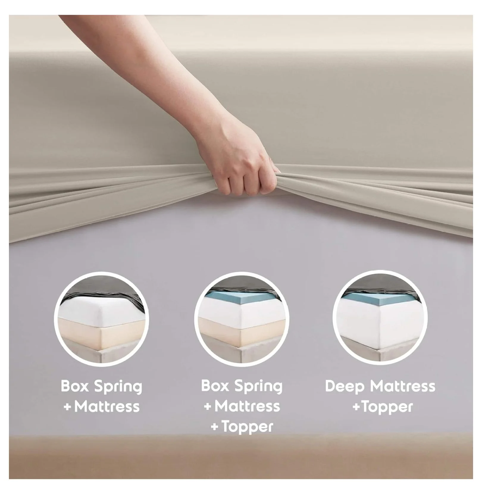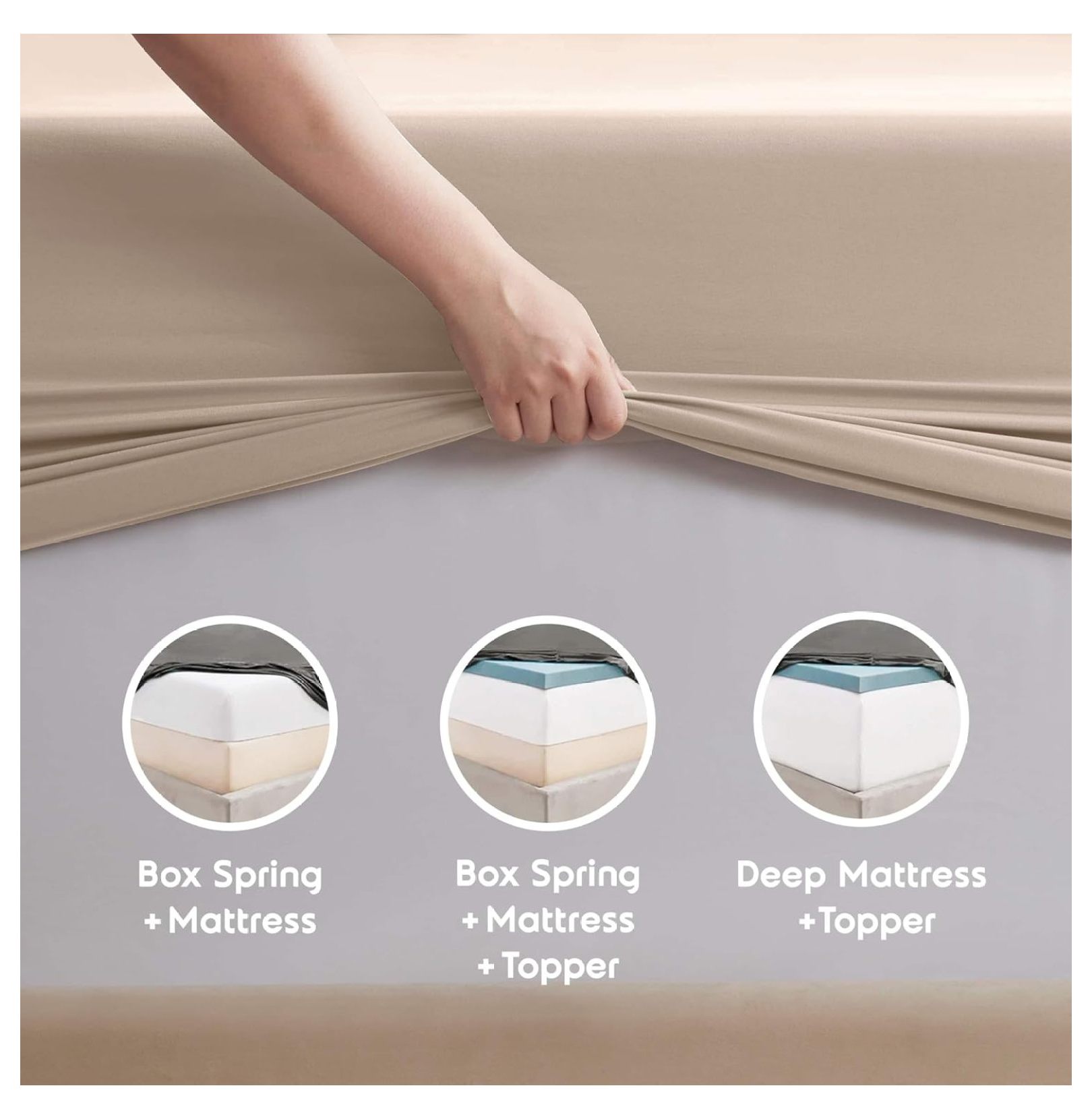 Queen Sheet Set - 4 Piece Bed Sheets for Queen Size Bed, Deep Pocket, Hotel Luxury, Extra Soft, Breathable and Cooling, Beige Cream Queen Size Sheets