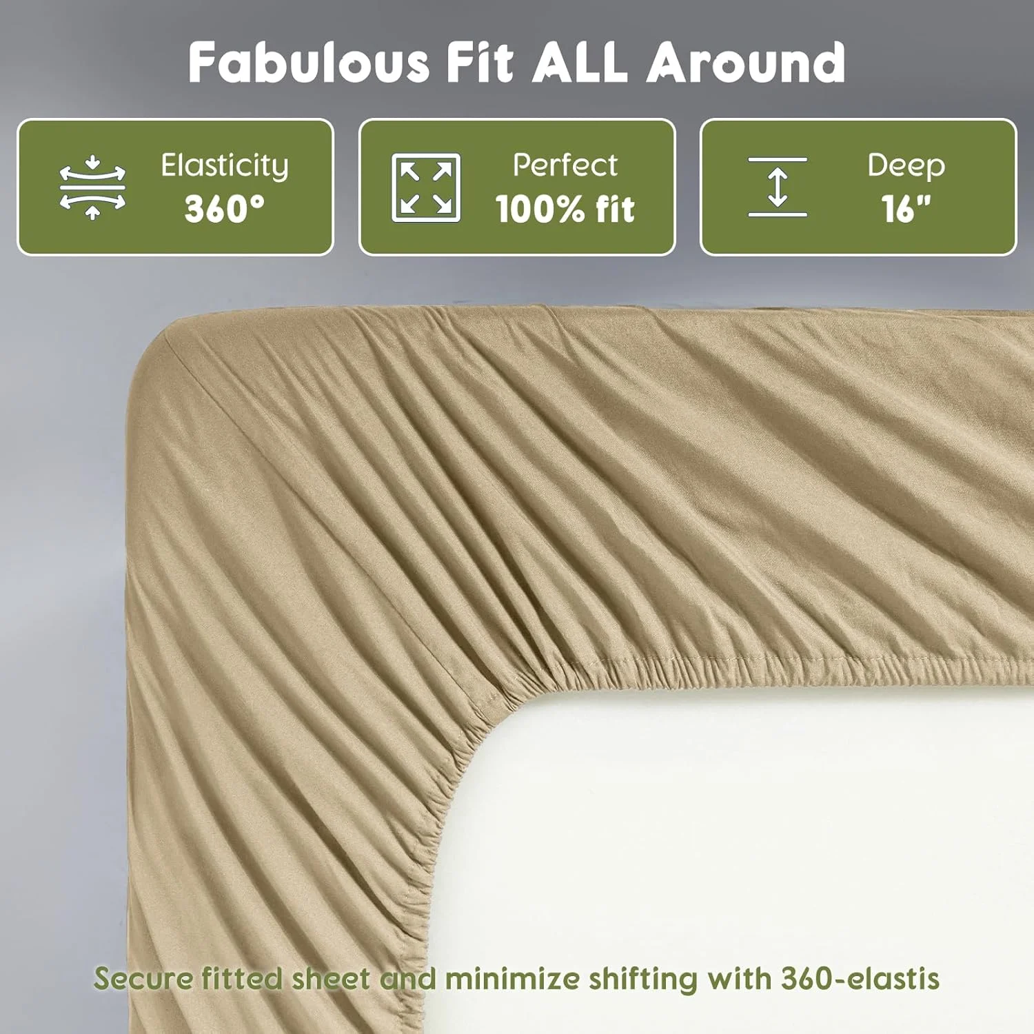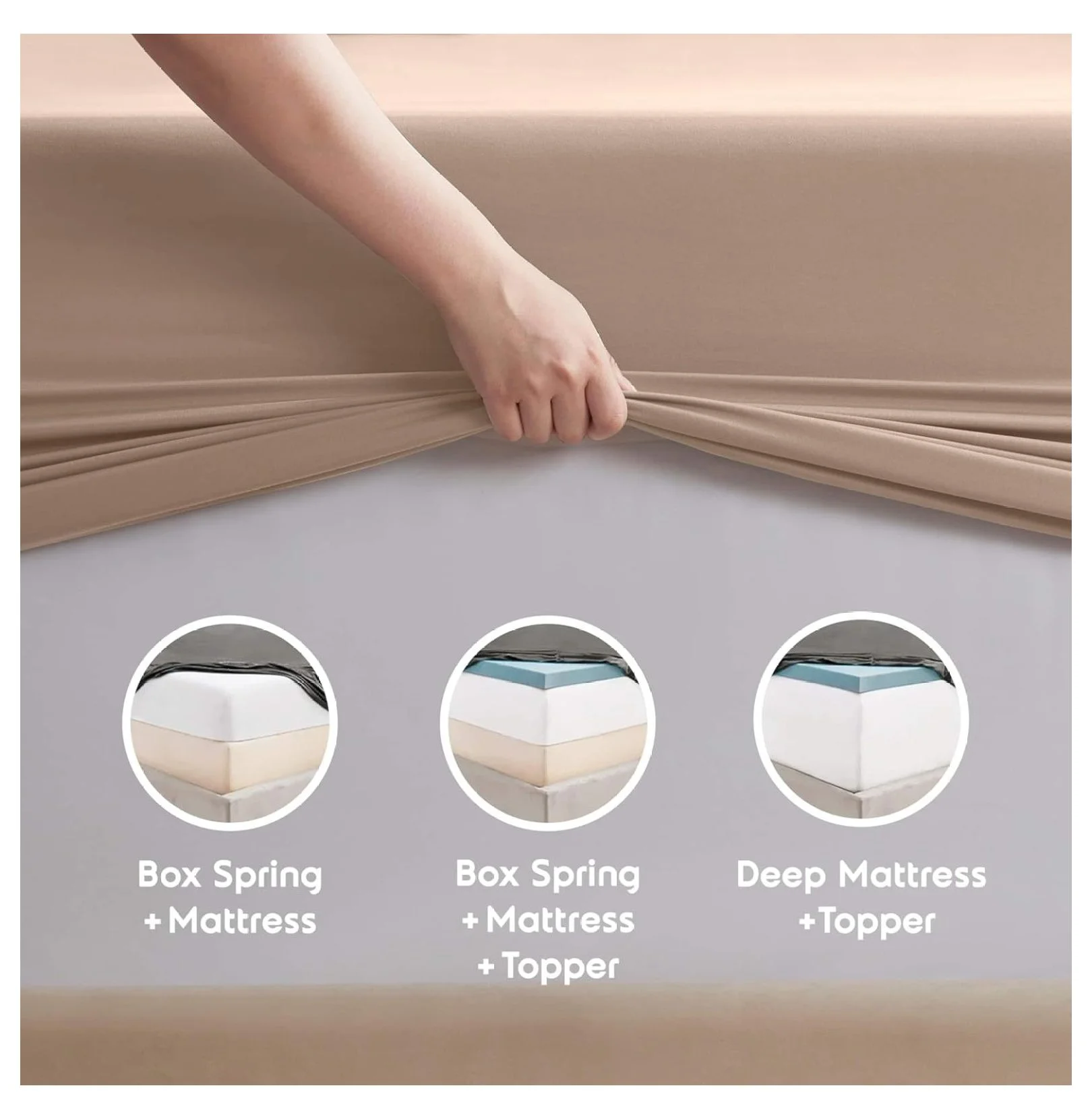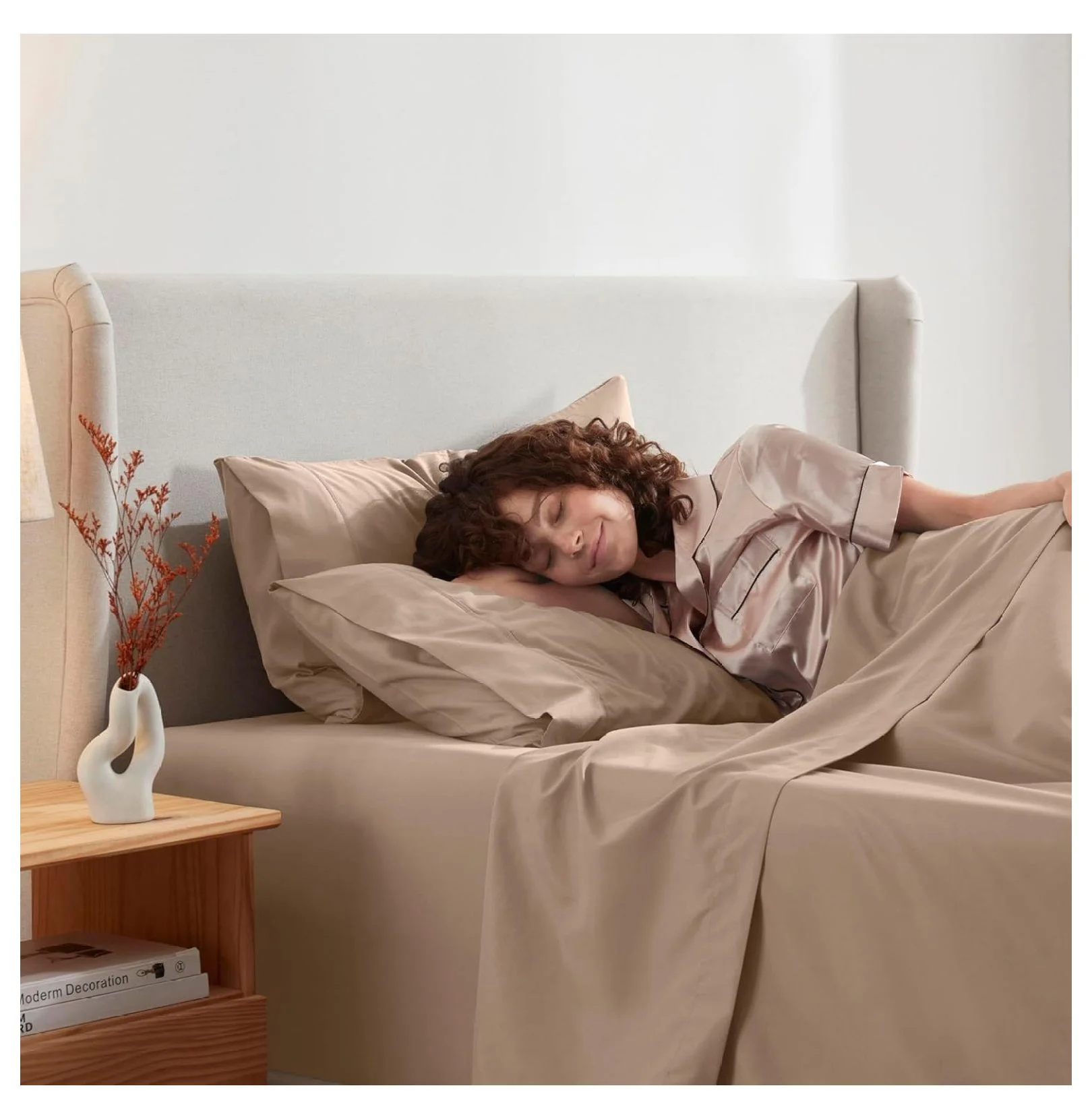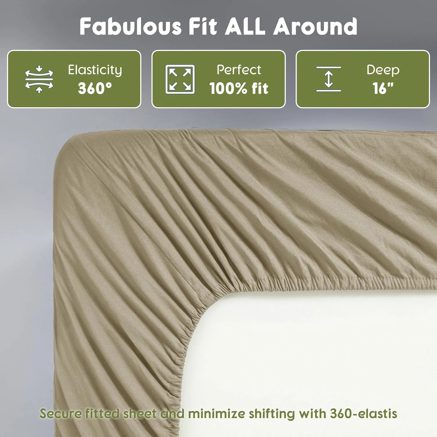 Queen Sheet Set - 4 Piece Bed Sheets for Queen Size Bed, Deep Pocket, Hotel Luxury, Extra Soft, Breathable and Cooling, Beige Cream Queen Size Sheets