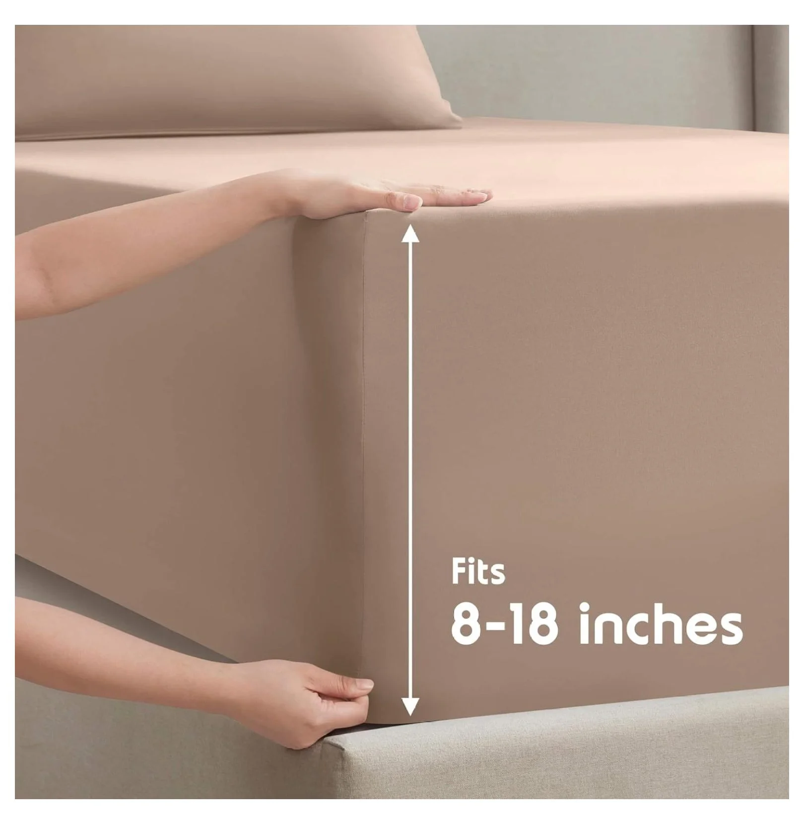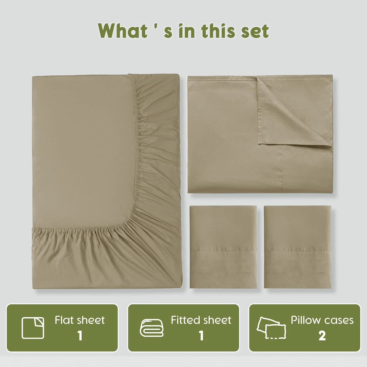 Kids Deep Pocket Twin Sheets - 3 Piece Twin Size Bed Sheets with Fitted Sheet, Flat Sheet, Pillow Case - Extra Soft Bedsheet Set with Deep Pockets for Twin Size - Taupe