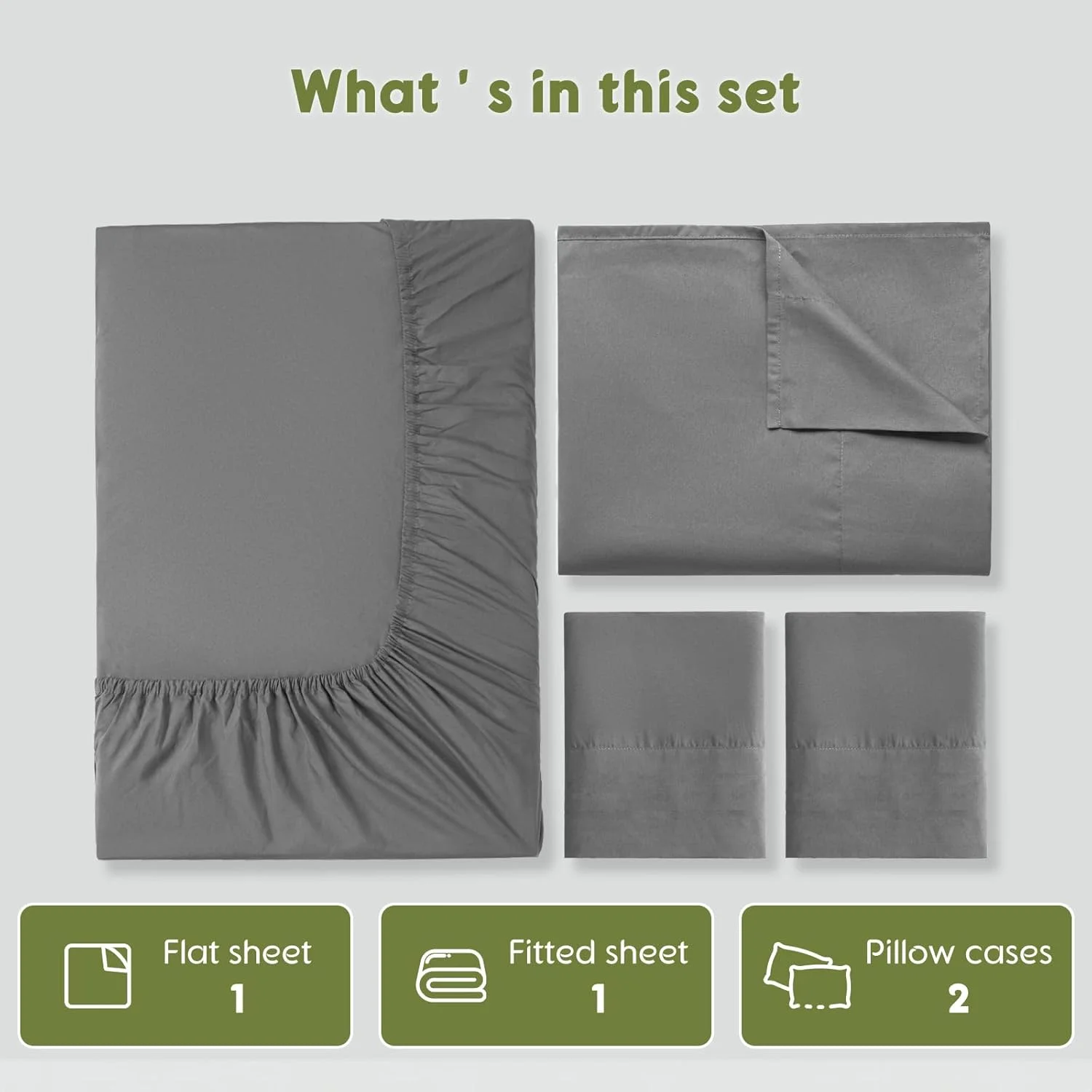 ' Short Queen Sheet Set - 4 Piece Bed Sheets, Deep Pocket, Hotel Luxury, Extra Soft, Breathable and Cooling, Linen Short Queen Size Sheets