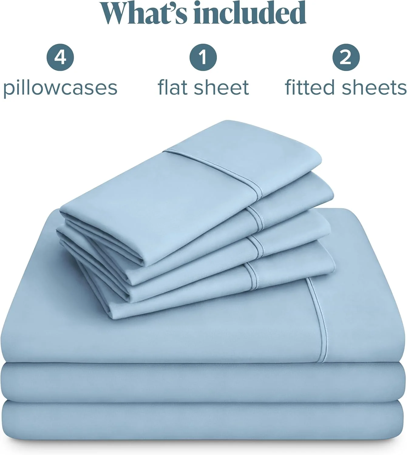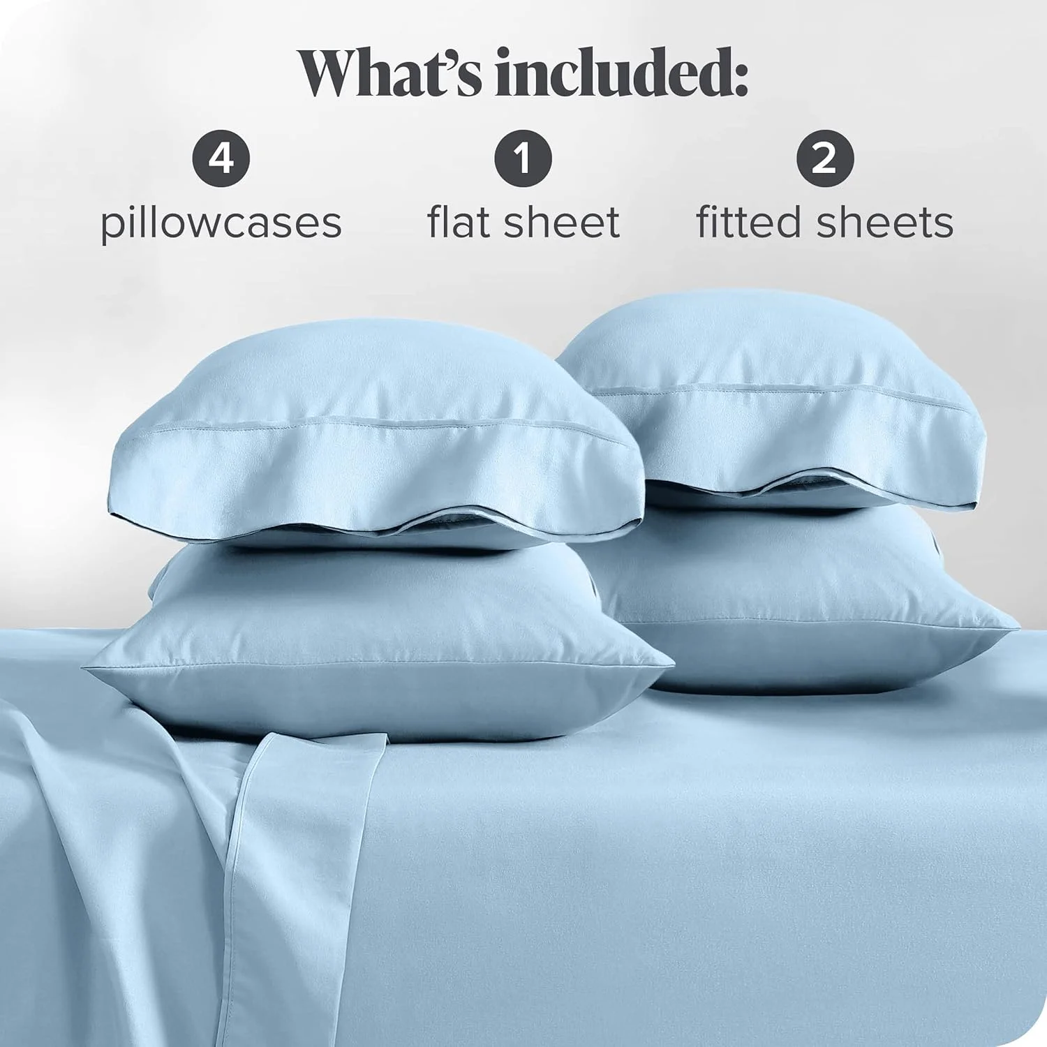 Hotel Luxury Split King Sheet Set, Extra Soft, 7 Piece Set, Deep Pockets, Easy Fit, Cooling & Breathable, Wrinkle, Fade, Stain Resistant, Set Includes 4 Pillowcases (Split King, Light Blue)
