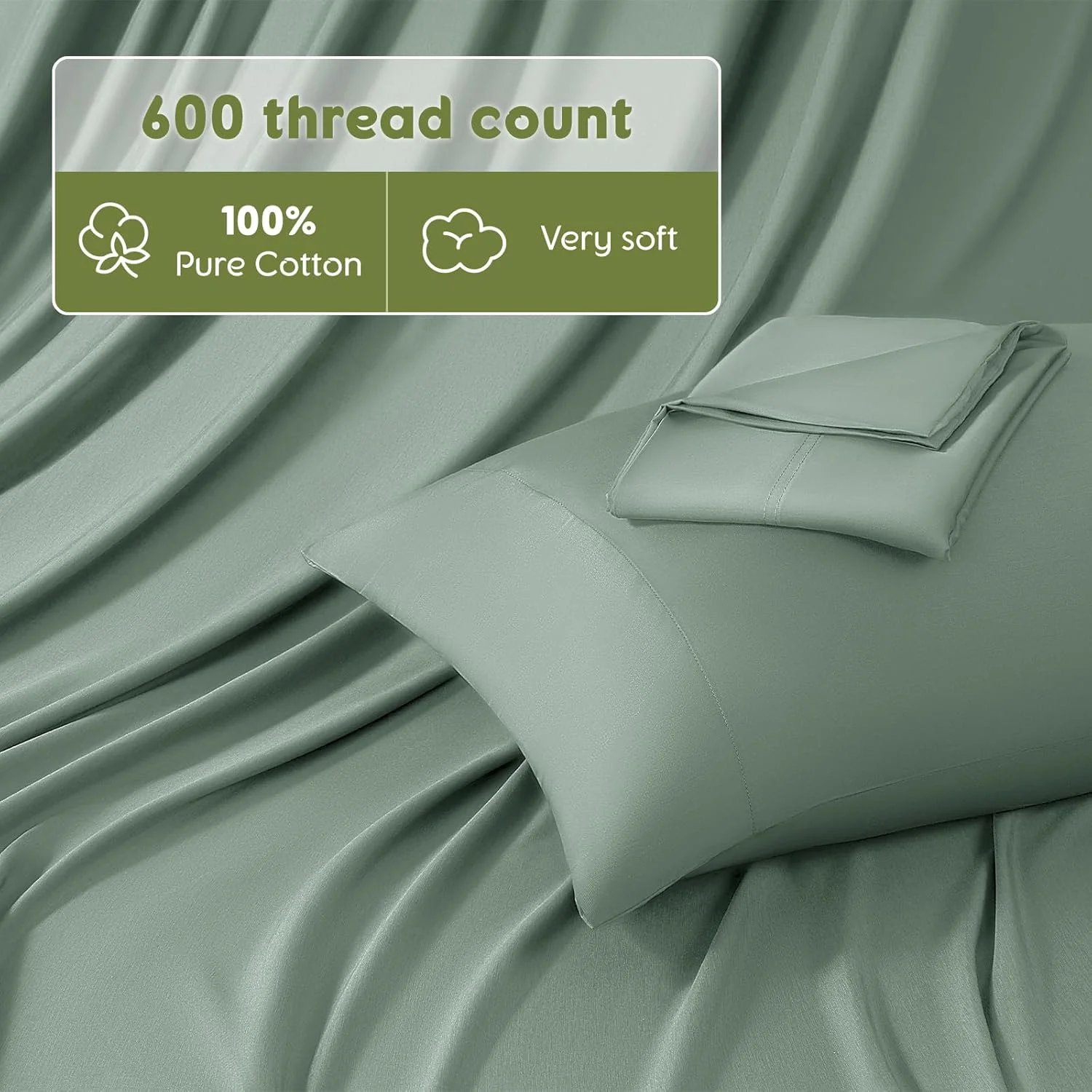 100% Egyptian Cotton Sheets King Size - 600 Thread Count, Luxury Hotel Quality Bedding Set, Soft Cooling Sateen Weave Bed Sheet Sets, 16" Deep Pocket - 4 PC(Sea Glass,King)