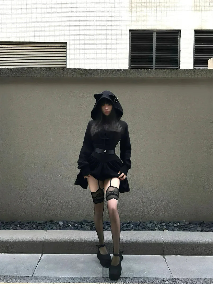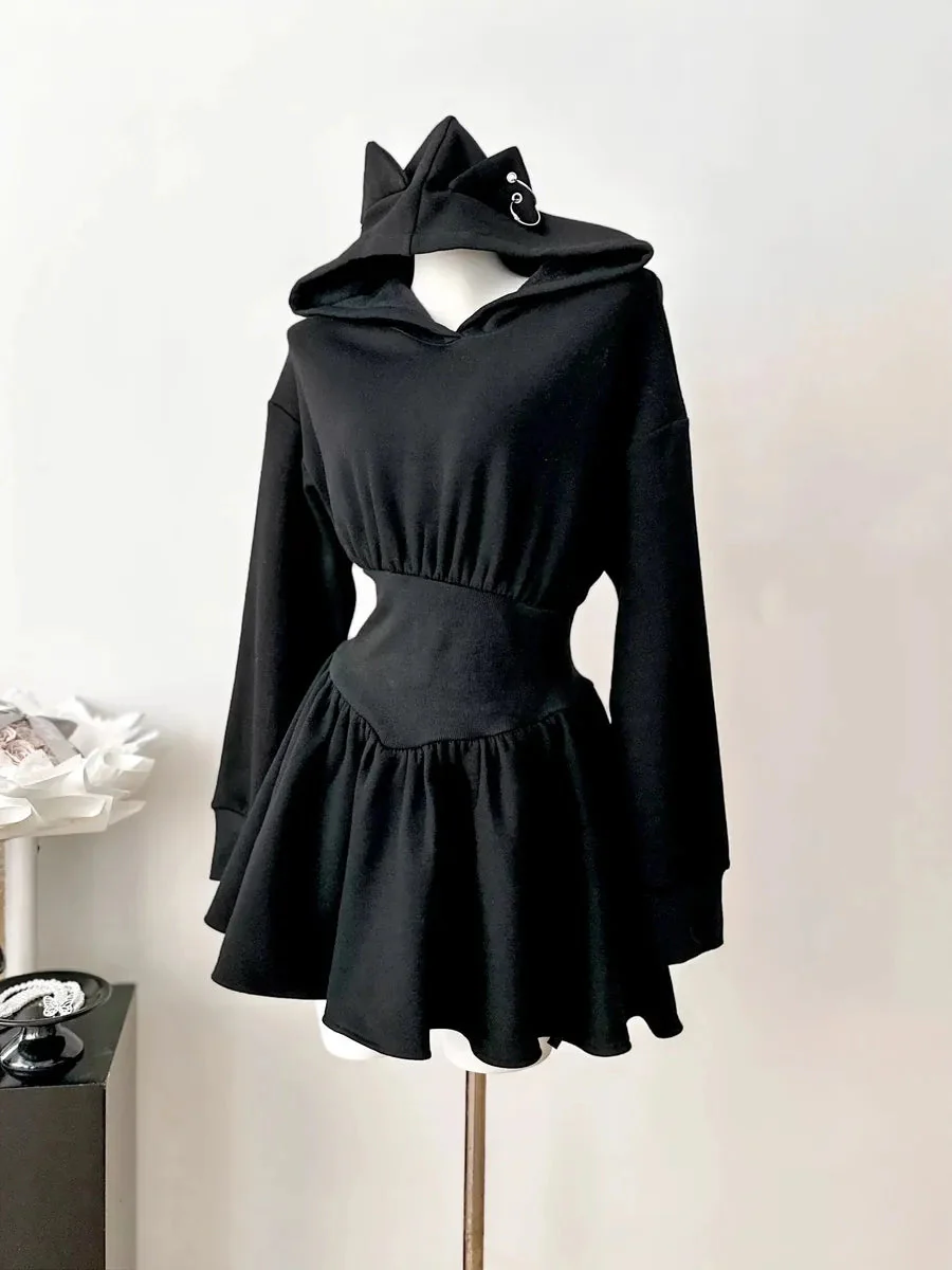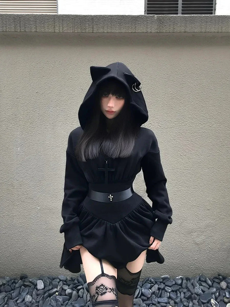 'Moon Cat' Dark Alt Cat Ears Hoop Hooded Dress