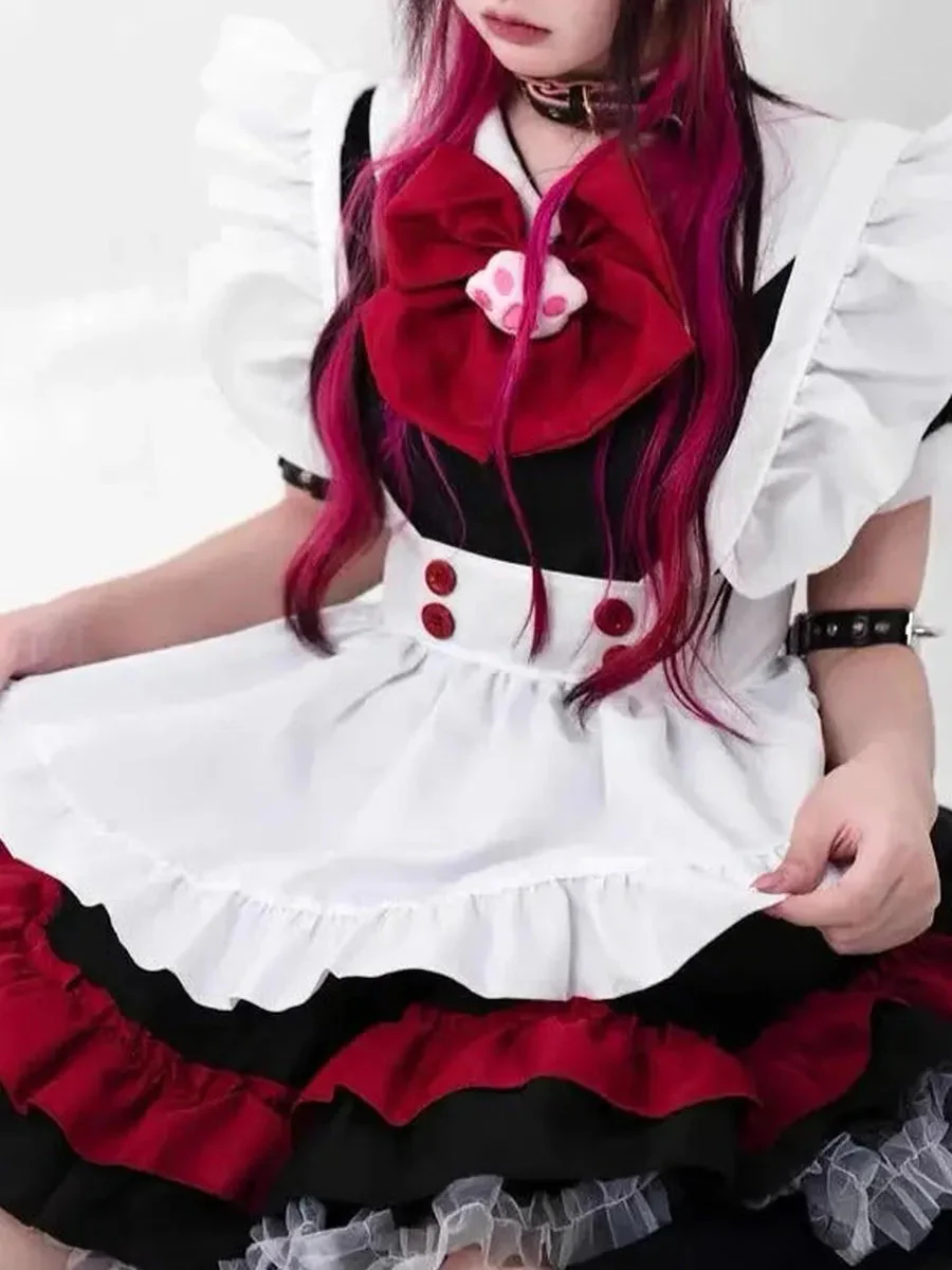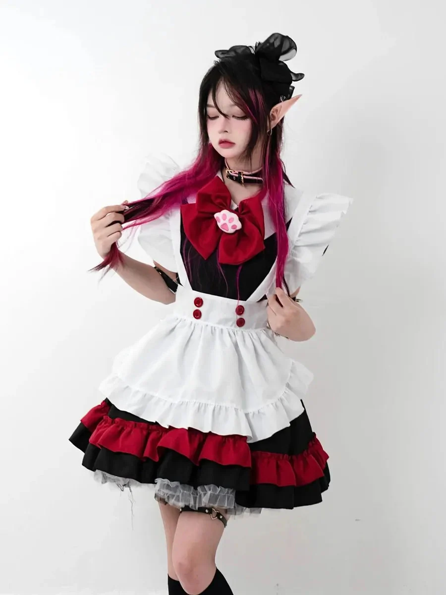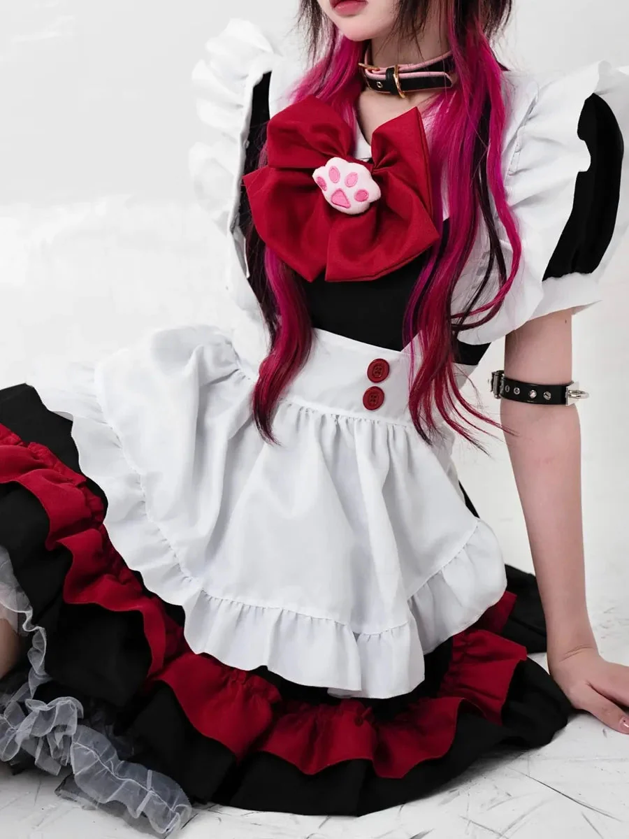 'Pawcess' Kawaii Goth Red Bow-tie Maid Dress